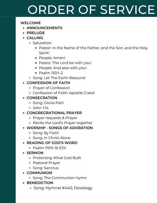 This weeks prayer list and bulletin